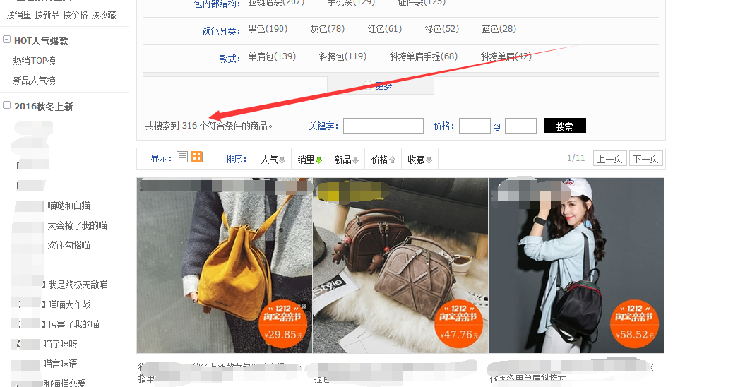 有一堆的产品,虽然都是女包,但是品类很多,这对于一个店铺起步是非常不利的。