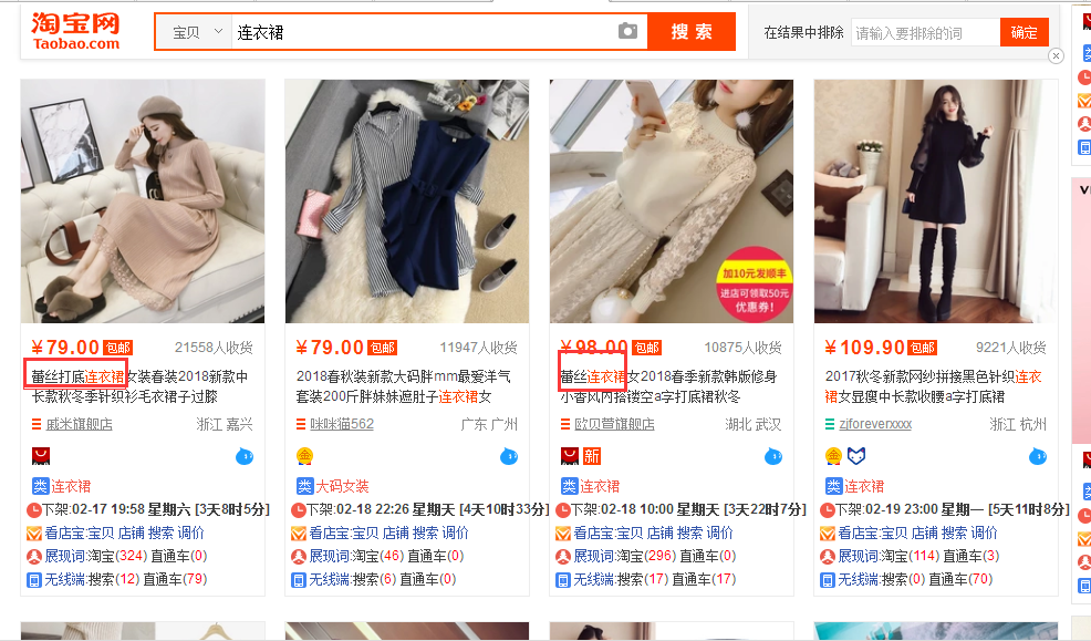 首先我们明确自己想做的类目后,在淘宝网搜索该类目的核心词,选择销量排序,观察现阶段销量排名前几的宝贝的风格款式,了解时下最流行的风格款式如何?从而作为我们选择宝贝的第一评判标准。